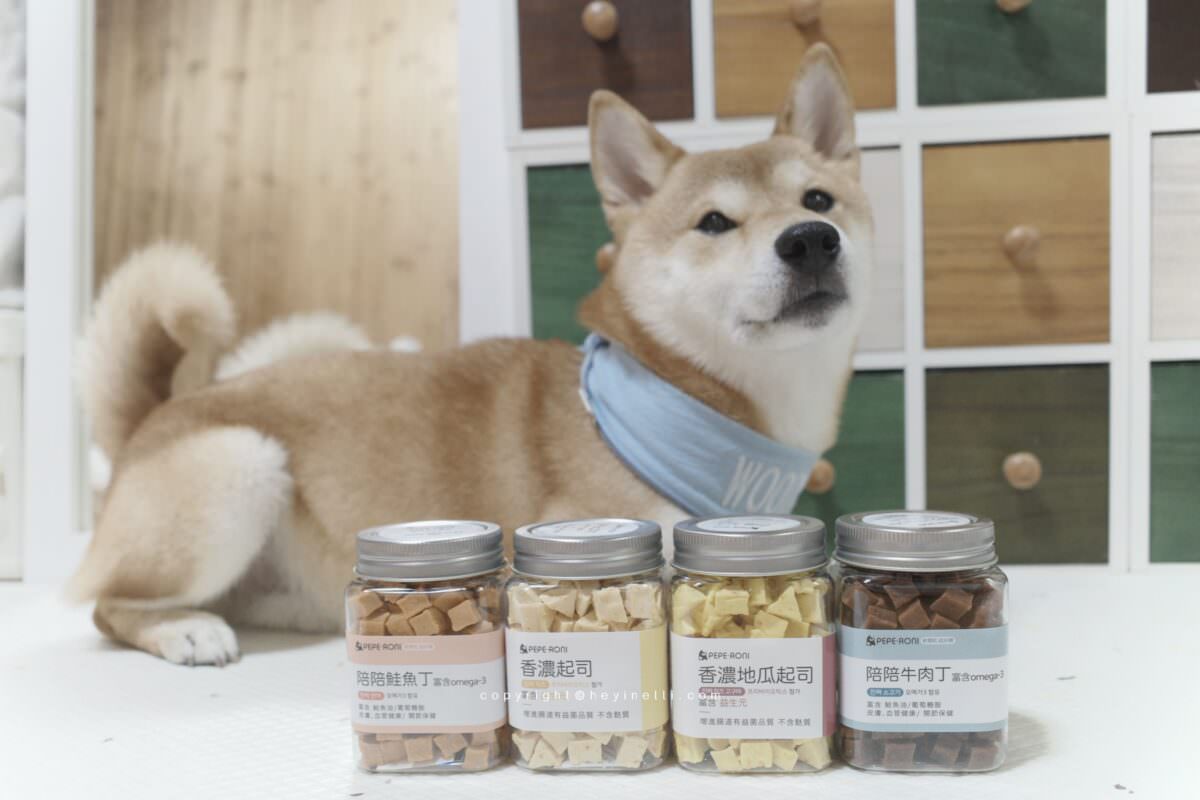 我們幫柴犬小迪選的【Peperoni |陪陪肉肉】陪陪精選禮盒(4件入)四個口味分別是:含有omega-3 有助於皮膚、關節健康的「陪陪牛肉丁、陪陪鮭魚丁」以及添加益生元可以增加腸道好菌、保持腸道健康的「陪陪香濃起司丁、陪陪地瓜起司丁」。